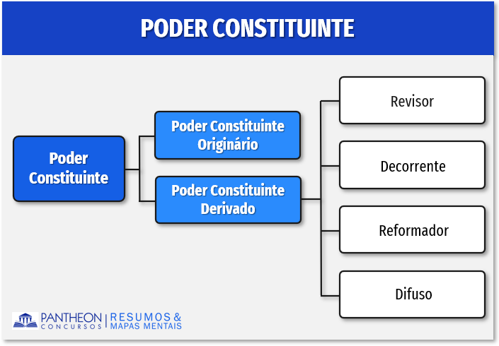 O poder constituinte derivado se divide em três formas: o poder constituinte derivado revisor; o poder constituinte derivado decorrente; e o poder constituinte derivado reformador.