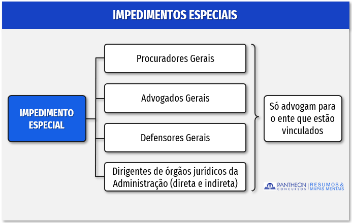 Os impedimentos especiais são aqueles que exercem o cargo com dedicação exclusiva, durante essa exclusividade não poderão exercer atividade advocatícia que não estejam vinculada a função, vejamos:
