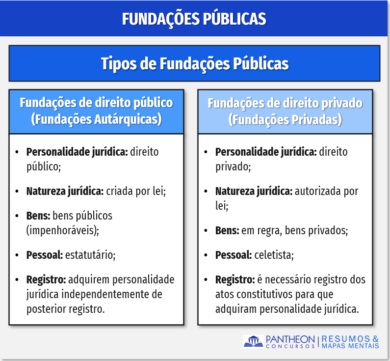 As fundações governamentais são pessoa jurídica de direito privado, criada após autorização legislativa com o registro dos seus atos constitutivos em cartório (Registro Civil de Pessoas Jurídicas).