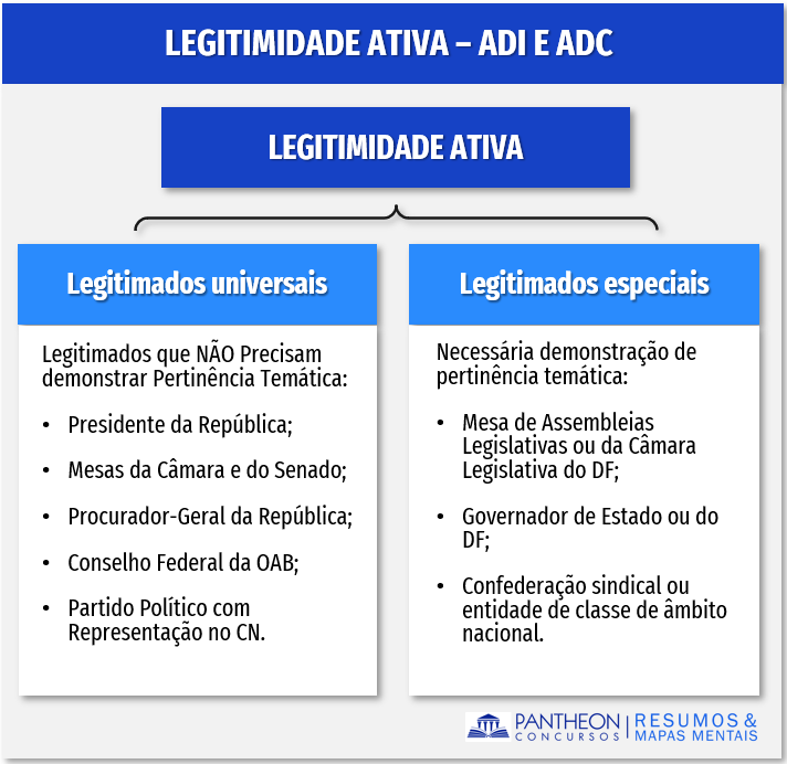 Veja, na tabela abaixo, quais dos legitimados precisam e quais não precisam comprovar a pertinência temática: