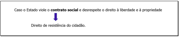 No pensamento de Locke Direito e o Estado só são justos se respeitarem a liberdade e a propriedade (direitos naturais). Assim, caso o Estado viole o contrato social desrespeitando-os torna-se legítimo o direito de resistência do cidadão.