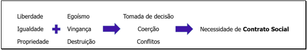 Ao aderir ao contrato social, os homens estariam renunciando ao seu direito natural de agir com liberdade em prol de seus interesses para confiá-lo ao Estado Civil, entidade que ficaria responsável pela manutenção dos direitos e liberdades dos indivíduos que agora passavam a viver em estado de civilidade.