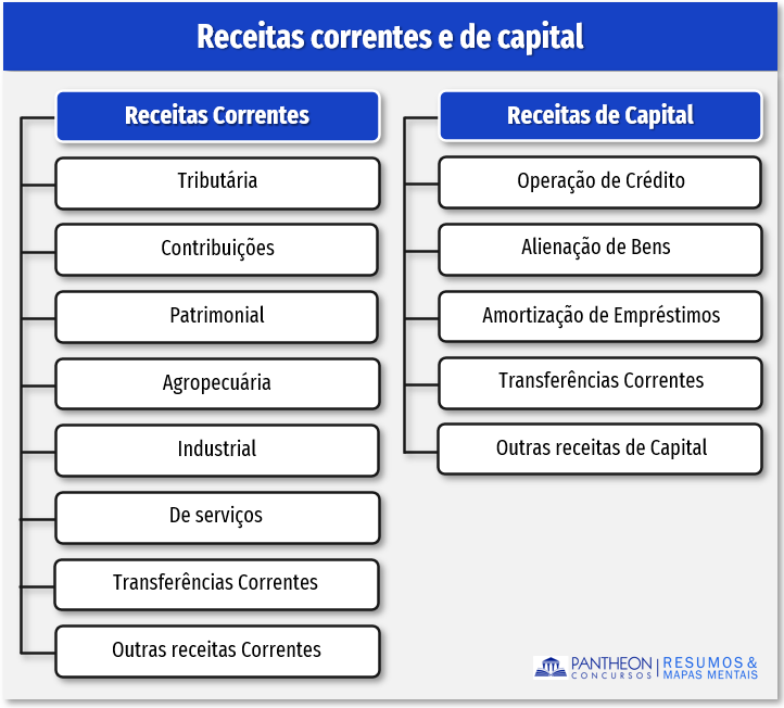 A Lei nº 4.320/1964 traz a classificação das receitas como: correntes e de capital.