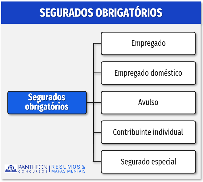 O grupo dos segurados obrigatórios é composto por cinco categorias: empregado, empregado doméstico, trabalhador avulso, segurado especial e contribuinte individual.