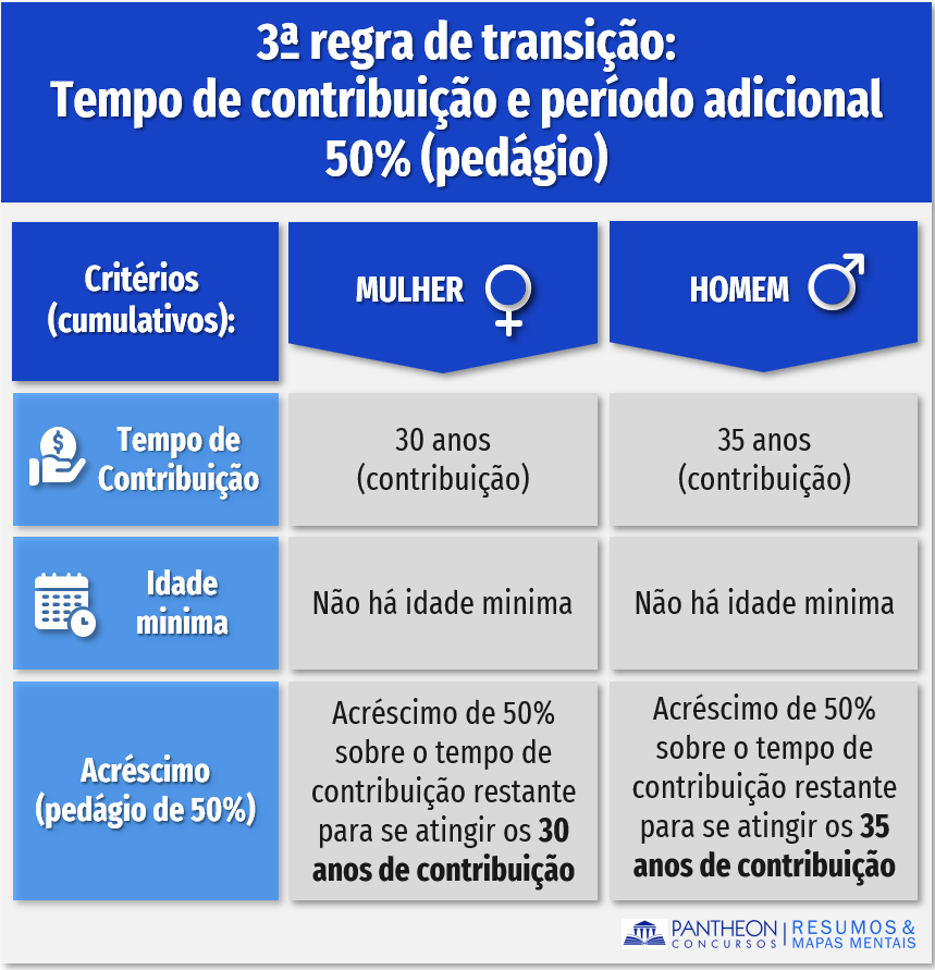 5.3.3. 3ª regra de transição: tempo de contribuição e período adicional 50% (pedágio)