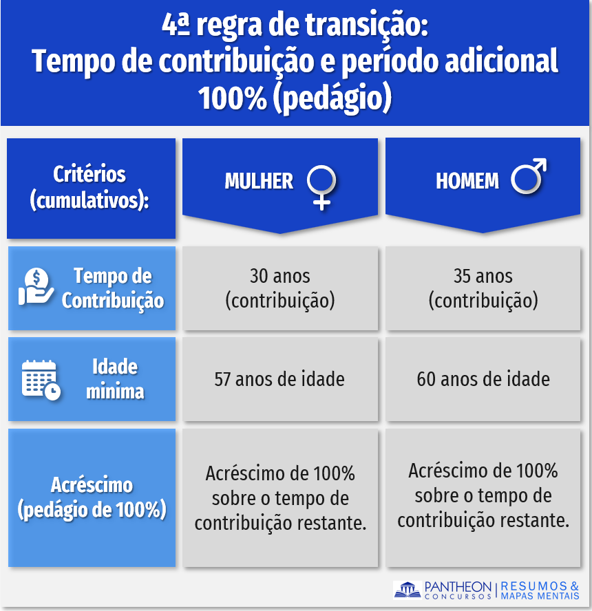 5.3.4. 4ª regra de transição: tempo de contribuição e período adicional 100% (pedágio)