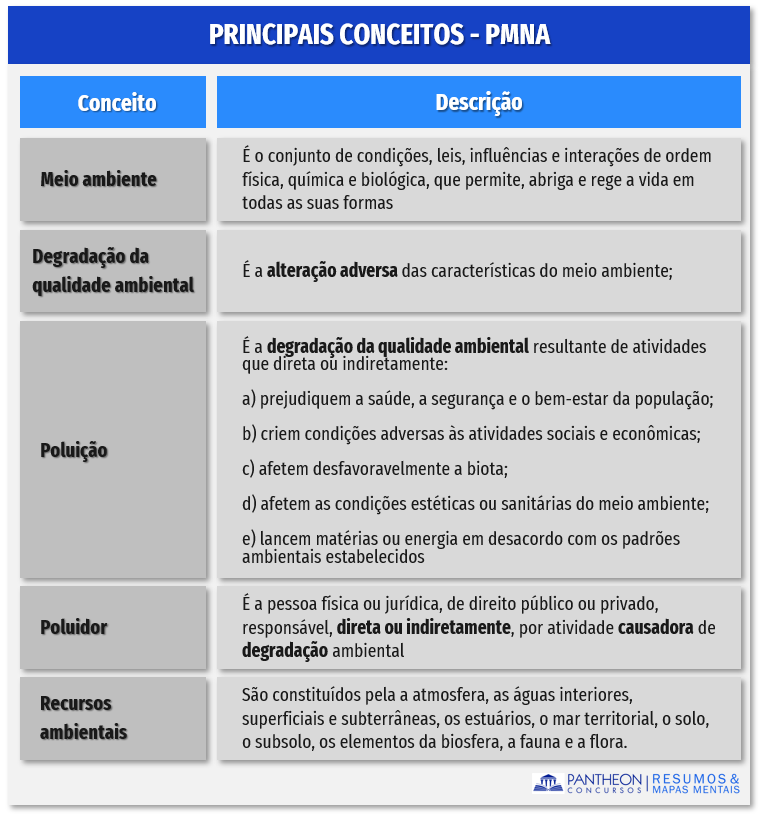 Para facilitar nosso estudo vamos montar um quadro com os respectivos conceitos estabelecidos pelo art. 3º da PNMA:
