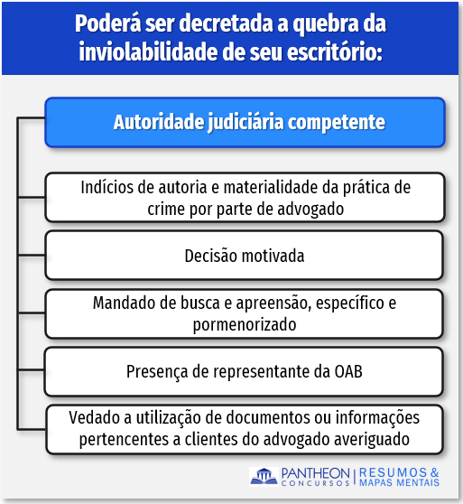 Portanto, autoridade judiciária competente poderá decretar a quebra da inviolabilidade de seu escritório, mediante: