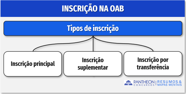 O Estatuto prevê três tipos de inscrição: (i) a inscrição principal, (ii) a inscrição suplementar e (iii) a inscrição por transferência.