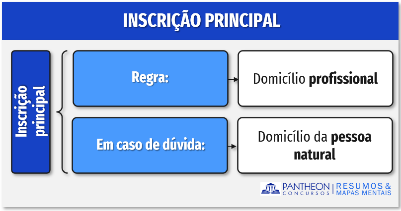 • Domicílio Profissional: considera-se domicílio profissional a sede principal da atividade de advocacia, prevalecendo, na dúvida, o domicílio da pessoa física do advogado (art. 10, § 1º, EAOAB);