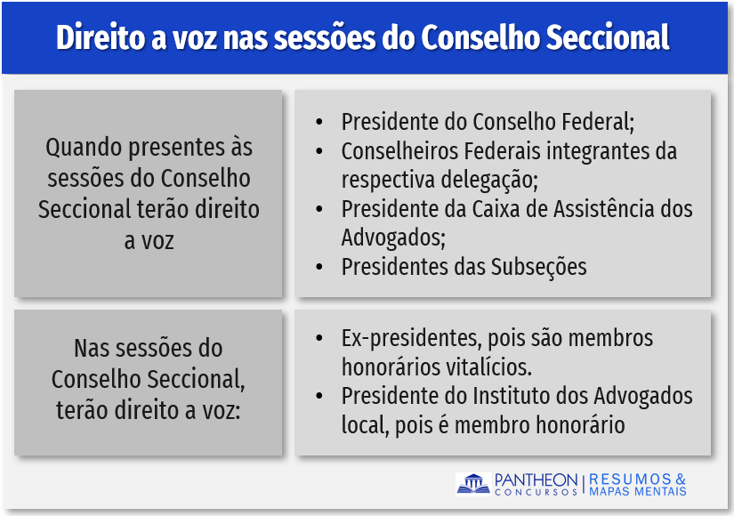Quando presentes às sessões do Conselho Seccional terão direito a voz: