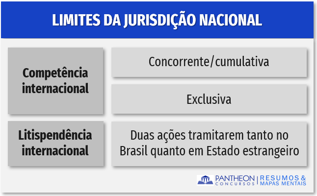As regras dos limites da jurisdição nacional podem ser divididas entre competência internacional e litispendência internacional.