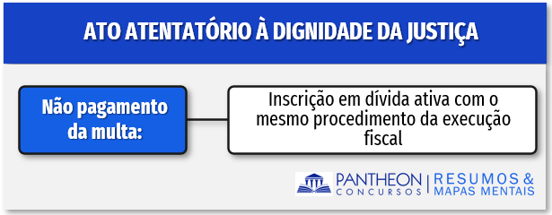 Ainda, se a multa por ato atentatório à dignidade da justiça não for paga no prazo fixado pelo juiz, essa será inscrita como dívida ativa da União ou do Estado após o trânsito em julgado da decisão que a fixou, e sua execução observará o procedimento da execução fiscal, revertendo-se aos fundos de modernização do Poder Judiciário (art. 77, § 3º, do CPC).