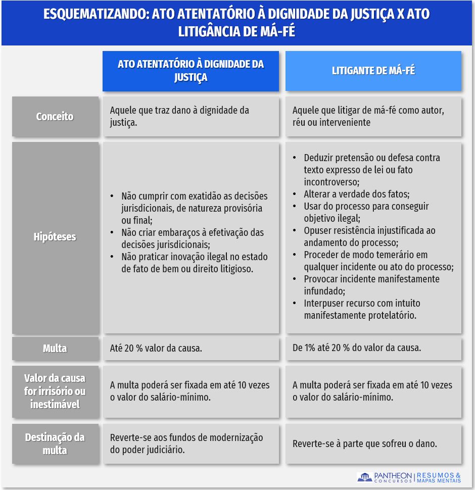 Esquematizando: ato atentatório à dignidade da justiça x ato litigância de má-fé.