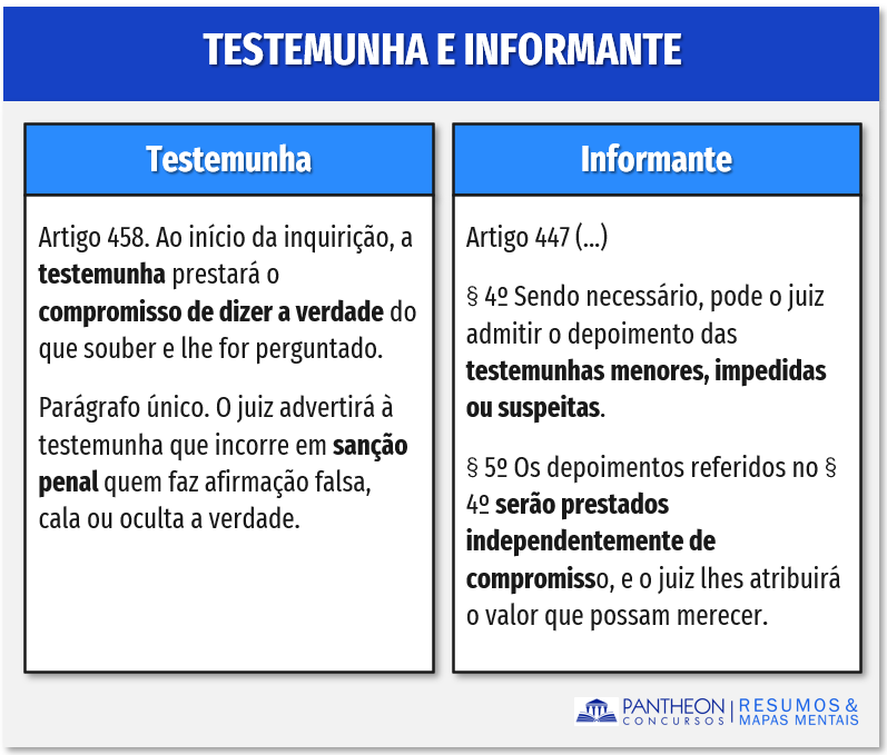 Qualquer pessoa pode depor como testemunha, exceto: as incapazes, impedidas ou suspeitas. Os parágrafos seguintes detalham quais são essas pessoas que tem restrição.