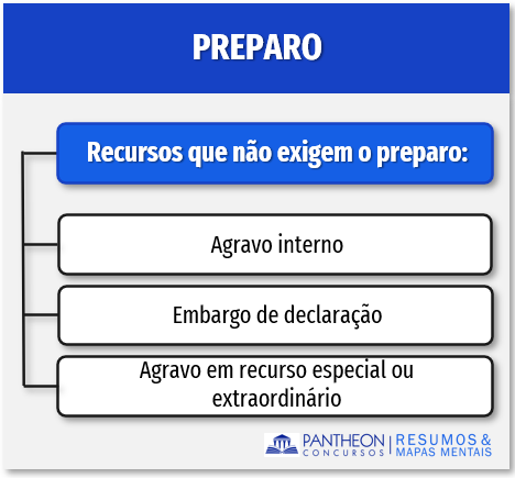 Como veremos no Capítulo seguinte, alguns recursos, daqueles elencados pelo CPC (art. 994) estão dispensados do preparo, abaixo os reunimos de forma sistematizada para revisão posterior.