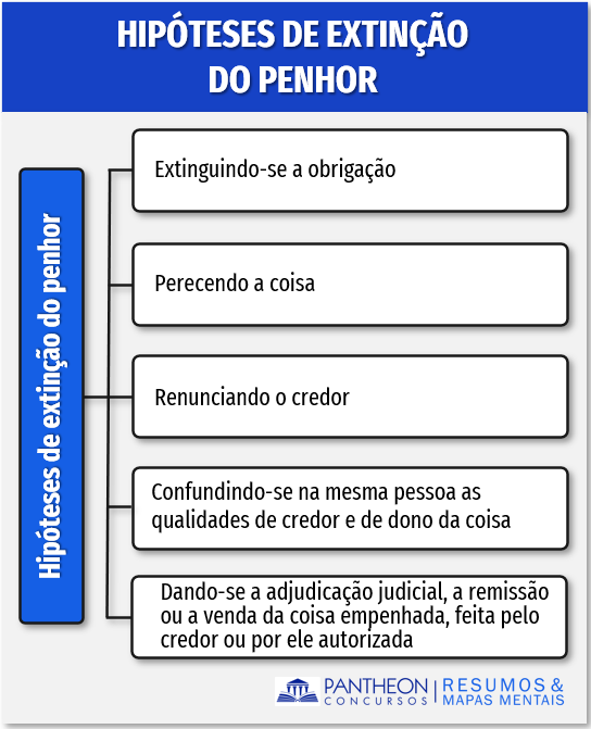 Por fim cabe destacar as hipóteses de extinção do penhor, estabelecidas na forma do artigo 1.436 do Código Civil: