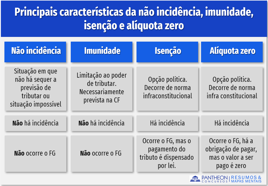 - Imunidade: Norma prevista na Constituição que impede a possibilidade de instituição do tributo pelo Ente.