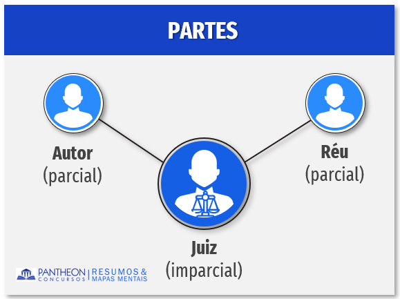 No processo do trabalho, as partes são aqueles que estão nos polos do processo. No polo ativo está o demandante, que é o autor da ação, no polo passivo está o reclamado, que é o réu, ambos são denominados partes do processo. O juiz, por seu turno, não é parte do processo, mas sim sujeito no processo, pois exercer a função jurisdicional, decidindo, em último termo, sobre a lide trabalhista, sendo, portanto, o representante do Estado-juiz. Assim, o juiz e seus auxiliares são sujeitos imparciais no processo, já as partes (autor e réu) são sujeitos parciais. Repisemos, o juiz é sujeito do processo, não é parte.