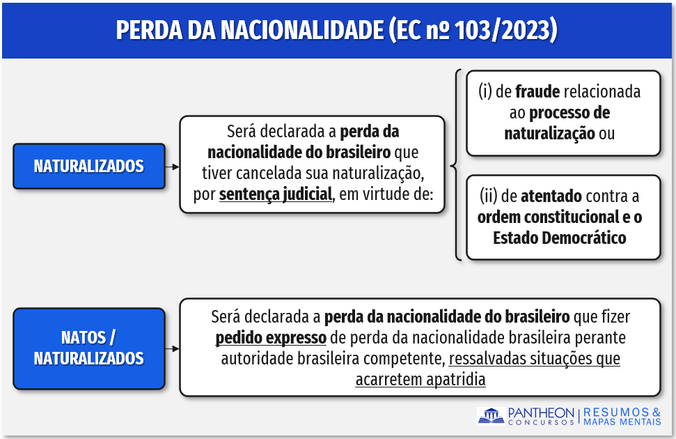Assim, em relação à perda da nacionalidade, de forma didática, temos: