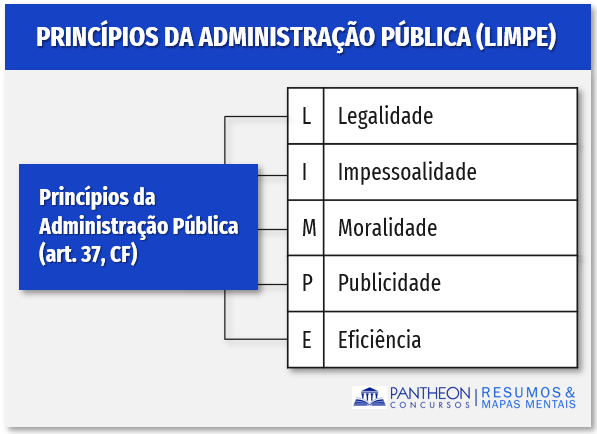 Como é possível depreender, são cinco os princípios da administração pública expressamente previstos no dispositivo constitucional supracitado: legalidade, impessoalidade, moralidade, publicidade e eficiência. Esse é o mais que batido mnemônico - L.I.M.P.E.