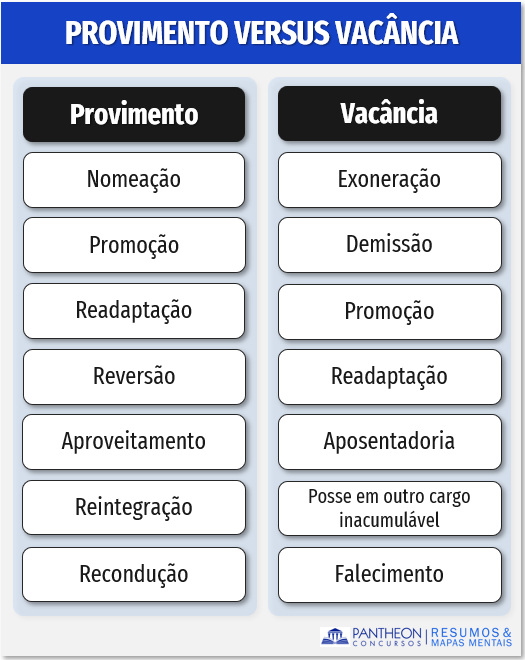 Novamente, a promoção e a readaptação são hipóteses tanto de provimento quanto de vacância.