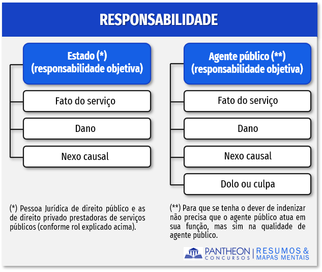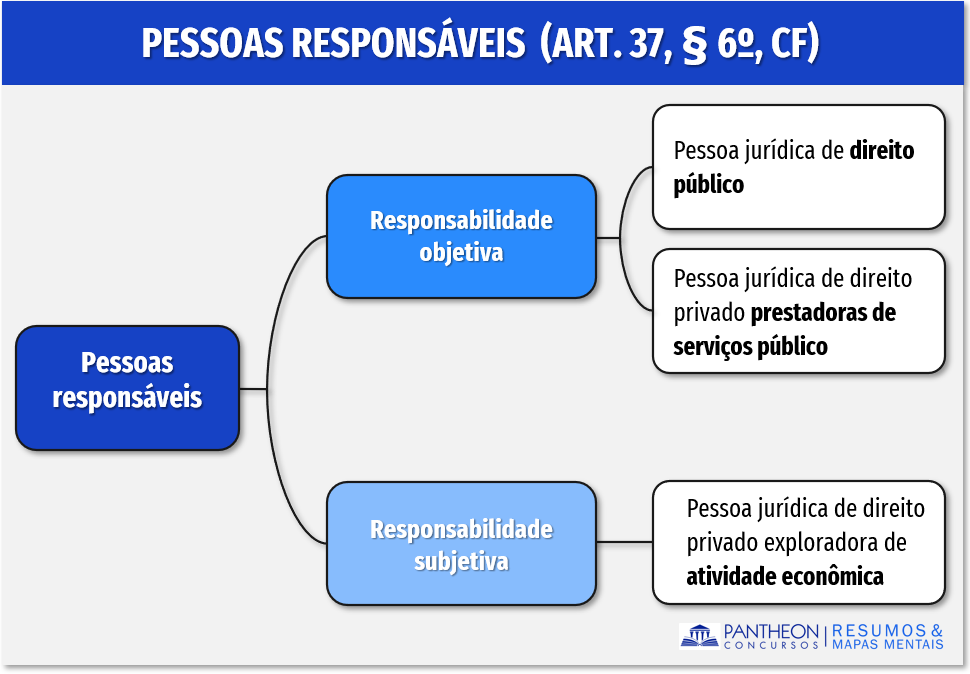 Quanto as pessoas responsáveis temos, expressamente: (i) pessoas jurídicas de direito público: União, Estados, Distrito Federal e Municípios e as autarquias e as fundações públicas; (ii) e as de direito privado prestadoras de serviços público: empresas públicas, sociedade de economia mista e fundações públicas com personalidade de direito privado quando prestarem serviço públicos e os concessionários e os permissionários de serviços públicos. Em qualquer caso, caberá ação regressiva.