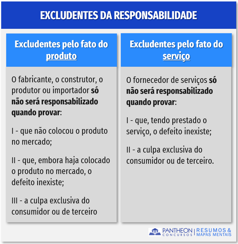 Vamos montar um quadro comparando as excludentes de responsabilidade para o vício do produto e o vício do serviço: