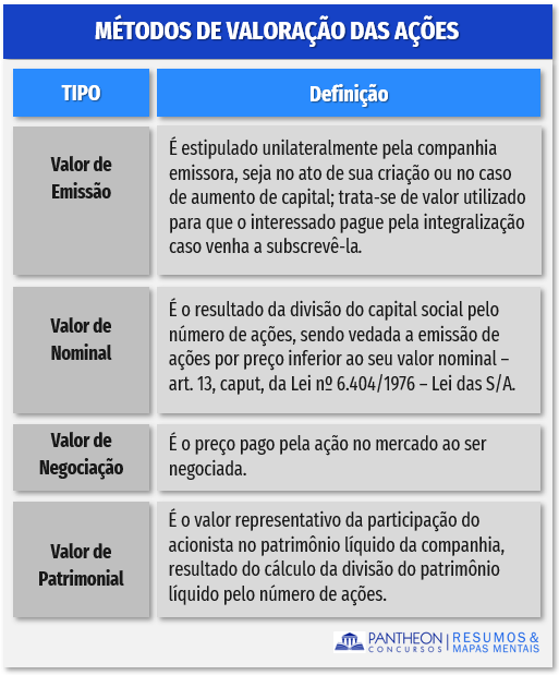 Às ações podem ser atribuídos valores distintos, a depender do método utilizado para a elaboração do cálculo: