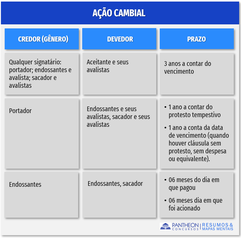 A ação cambial é instrumento jurídico para a execução do título de crédito, no qual o credor tenta receber os valores devidos de todo e qualquer devedor. Para o professor RICARDO NEGRÃO, há das ações cambiais (i) a ação direta, que pode ser intentada contra o aceitante e seus avalistas e (ii) ação de regresso, que se dirige contra todos os demais coobrigados (sacador, endossantes e seus avalistas).