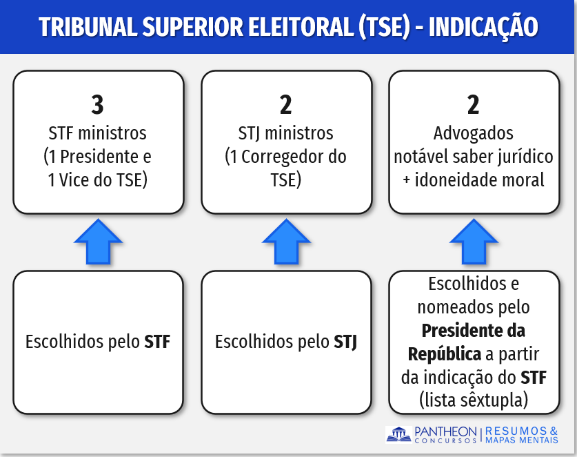 Quanto à indicação para composição do TSE, temos de forma didática: