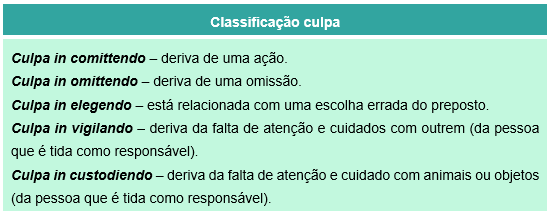 Dentro desse tema, a doutrina estabelece os critérios do conteúdo da conduta culposa do agente, podendo essa ser classificada como:
