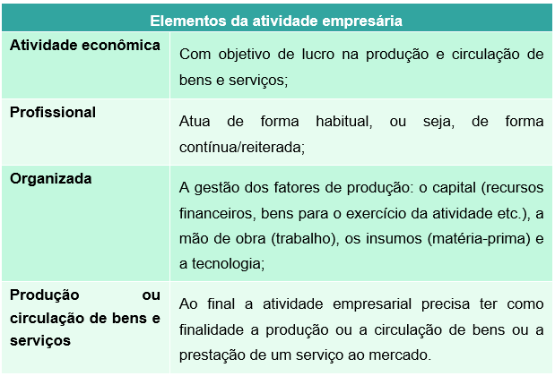 Dica: NÃO integra o conceito de atividade empresarial o prévio registro no órgão responsável, sendo irrelevante para o seu exercício.
