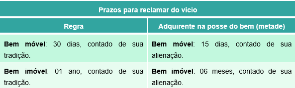 Prazo decadencial para reclamação do vício ou do defeito