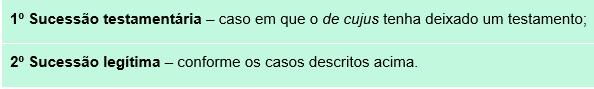 Por fim, podemos afirmar que a sucessão legítima é subsidiária à sucessão testamentária.
