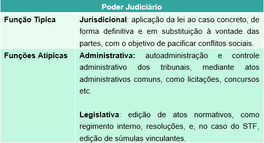 O Poder Judiciário é responsável pela aplicação da lei ao caso concreto, resolvendo os conflitos de forma definitiva e em substituição à vontade das partes.