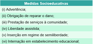 O ECA prevê as medidas socioeducativas que serão aplicadas no caso da prática de ato infracional de adolescente, são elas (art. 112):