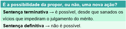Principal diferença entre sentença terminativa e sentença definitiva