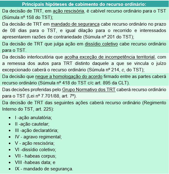 O recurso ordinário caberá para as decisões definitivas ou terminativas: